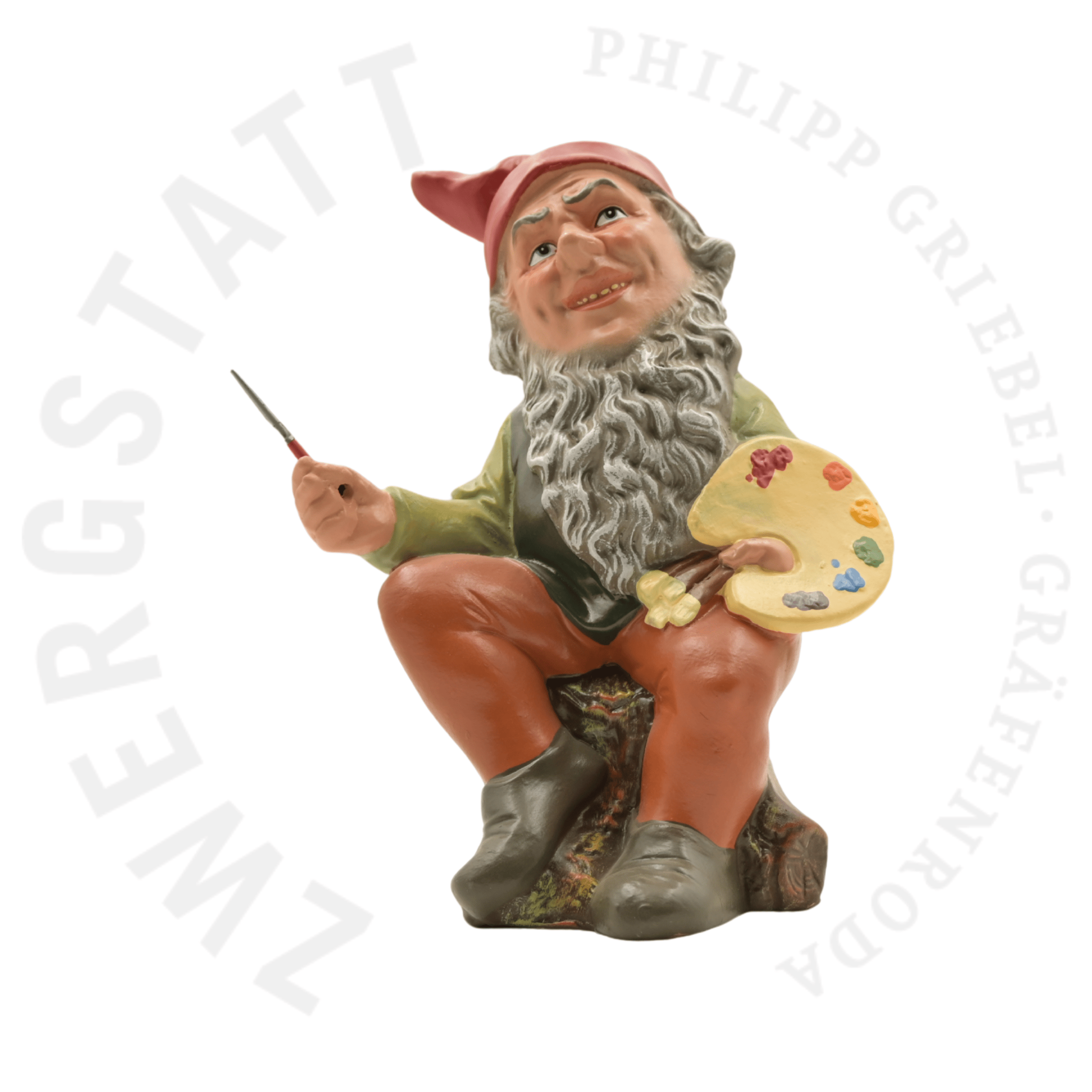 Vincent the Artist represents the creative and contemplative side of the classic garden gnome tradition. With his calm posture and characteristic depiction as a painter, he adds a distinctive artistic accent to gardens, patios, balconies, or display collections. The figure conveys focus, craftsmanship, and creative expression, clearly setting itself apart from purely decorative garden ornaments.